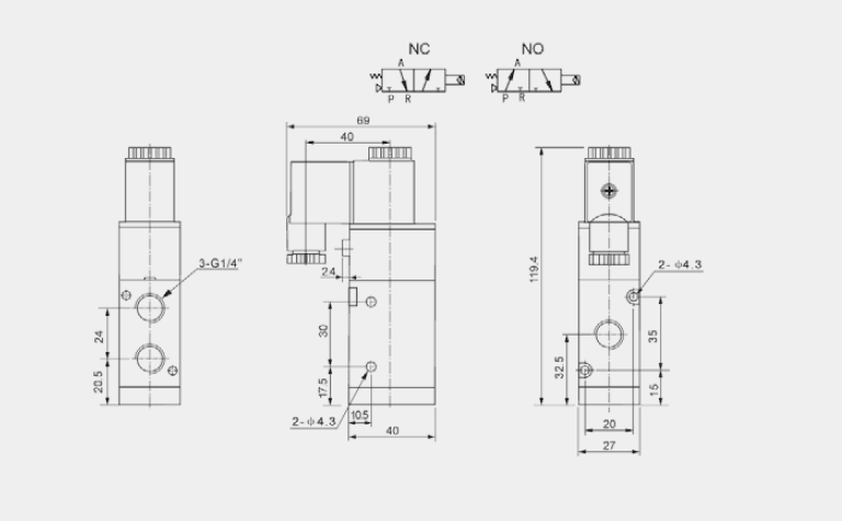 名稱: | 4V300系列二位三通單電控板接式電磁閥 |